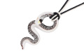 蛇をモチーフにしたペンダントです。今にも動き出しそうなリアルなデザインはまさに芸術品です! ガラスならではのクリスタル感と散りばめたシルバーが高級感を演出しています! ネックレスのカラーは組合わせ自由ですので好みのカラーを探してください。