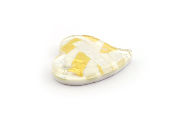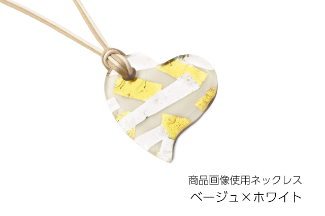 ベネチアングラスのハート型のペンダントトップです! ボリュームもあってナナメがけなのもすてきなデザインです。ゴールドやシルバーをガラスで挟んでます。ネックレスのカラーは組合わせ自由ですのでお好みのカラーを探してください。