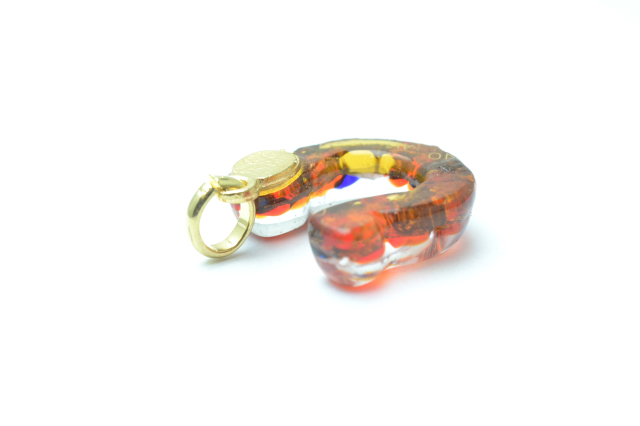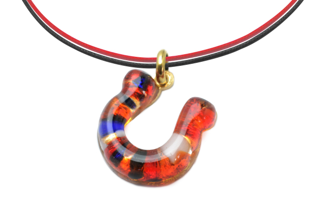 ベネチアングラスの馬蹄モチーフのペンダントトップです。ヨーロッパの古くからのラッキーアイテム!Uの字のところに幸運が溜まるといわれています。ゴールドやシルバーをガラスで挟んだ大人気のデザインです。ネックレスのタイプやカラーを自由に選んでいただけます。
