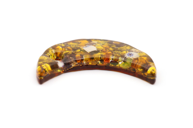 ベネチアングラスの月型のペンダントトップです! とても人気のある定番のデザインです。ゴールドやシルバーをガラスで挟んでます! ネックレスのカラーは組合わせ自由ですのでお好みのカラーを探してください。