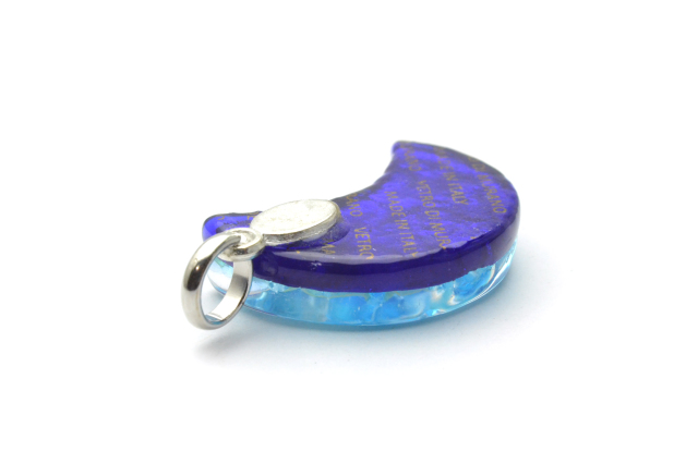 ベネチアングラスの月型のペンダントトップです。とても人気のある定番のデザインです! ゴールドやシルバーをガラスで挟んでます。ネックレスのタイプやカラーを自由に選んでいただけます。