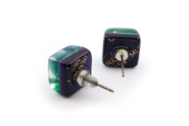 ベネチアングラスのスクエア型のピアスです。ゴールドやシルバーをガラスで挟んだ大人気のデザインです。ピアストリーネのペンダントと合わせるのもオススメです!