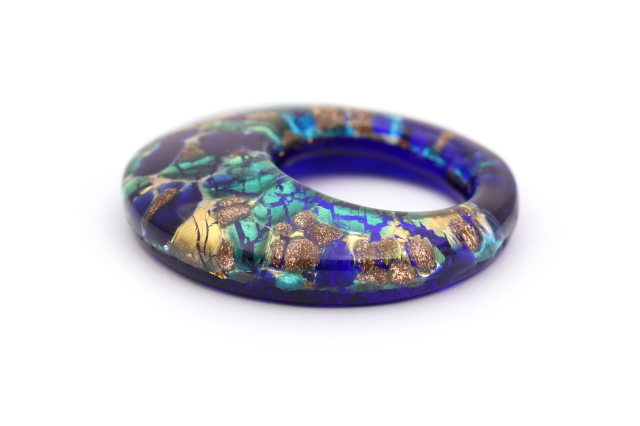 ベネチアングラスのドーナツ型のペンダントトップです! おおぶりの存在感のあるデザインです。ゴールドやシルバーをガラスで挟んでます。金属を使っていないのでアレルギーも安心です。ネックレスのカラーは組合わせ自由ですのでお好みのカラーを探してください。