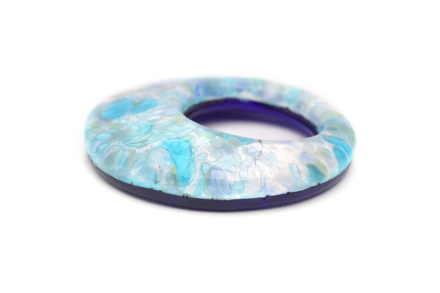 ベネチアングラスのドーナツ型のペンダントトップです! おおぶりの存在感のあるデザインです。ゴールドやシルバーをガラスで挟んでます。金属を使っていないのでアレルギーも安心です。ネックレスのカラーは組合わせ自由ですのでお好みのカラーを探してください。