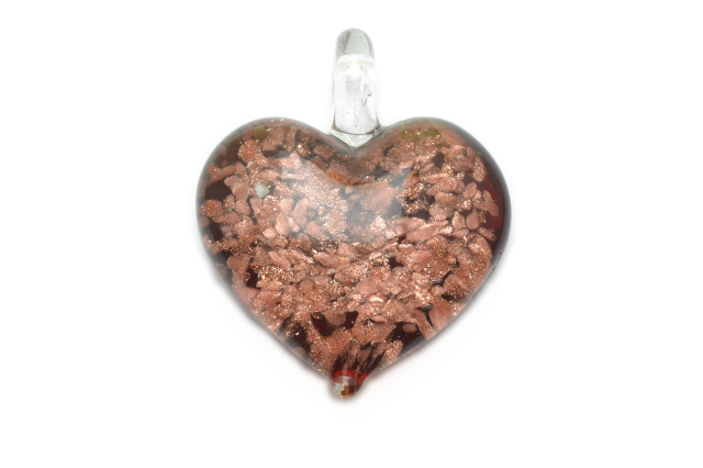 ベネチアングラスのかわいいハートのペンダントトップです! ぷっくりとしたフォルムと透通る質感はまるでクリスタルです。ラメがキラキラと輝く美しいデザインです! お好みのネックレスを選んでください。