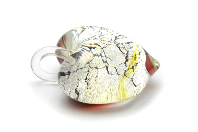 ベネチアングラスのかわいいハートのペンダントトップです! ぷっくりとしたフォルムと透通る質感はまるでクリスタルです。シルバーを挟んだクールなデザインです。お好みのネックレスを選んでください。
